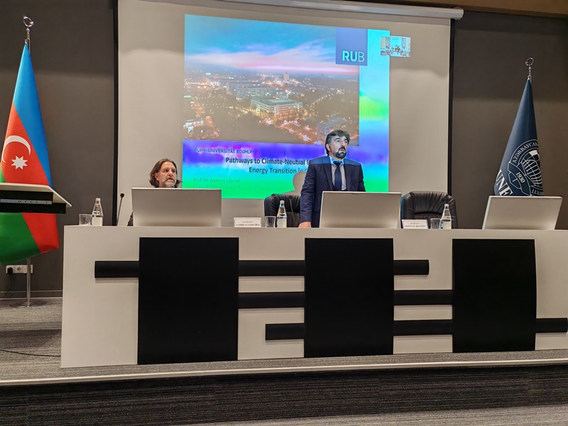 Avropanın ətraf mühit üzrə məhşur tədqiqatçılarından olan A.Löschel UNEC-lə də tanış olub. O, 3 saylı tədris binasındakı laboratoriyaların fəaliyyətini yaxından izləyib, eyni zamanda professor-müəllim heyəti ilə görüşərək, “Pathways to Climate-Neutral Energy Systems” mövzusunda təqdimatla çıxış edib.