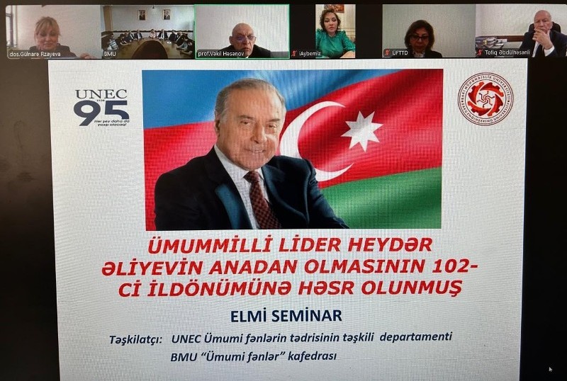 Azərbaycan Dövlət İqtisad Universiteti (UNEC) Ümumi fənlərin tədrisinin təşkili departamenti və Bakı Mühəndislik Universitetinin (BMU)  “Ümumi fənlər” kafedrasının birgə təşkilatçılığı ilə Ulu Öndər Heydər Əliyevin anadan olmasının 102-ci ildönümünə həsr edilmiş elmi seminar keçirilib.