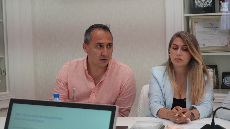 Координатор по методическим вопросам внедрения методов PBL и Flipped Learning (Перевернутое обучение) Санубар Сафиева выступила с презентацией по результатам тренинга. После презентации она рассказала о совершенствовании системы LMS UNEC, применении искусственного интеллекта, донесении сути и ожиданий от внедряемых инноваций до студентов и преподавателей, превращении сотрудничества с промышленностью и социальной работой в неотъемлемую часть образовательного процесса, а также о новых формах оценки знаний студентов и других важных вопросах.