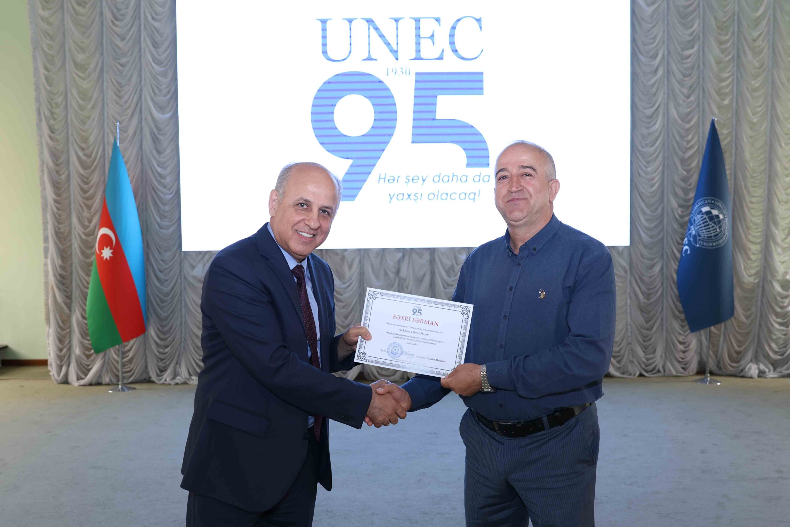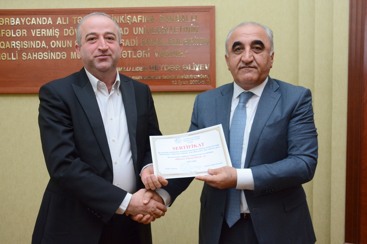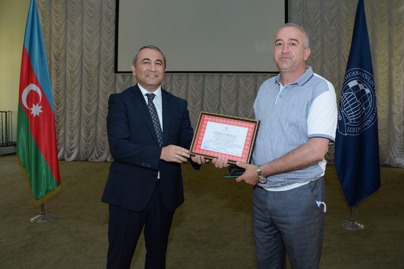 UNEC-in 90 illik yubileyi münasibətilə yüksək ixtisaslı kadrların hazırlanmasındakı xidmətlərinə görə Azərbaycan Respublikası Elm və Təhsil Nazirliyinin Fəxri Fərmanı ilə təltif olunmuşdur.